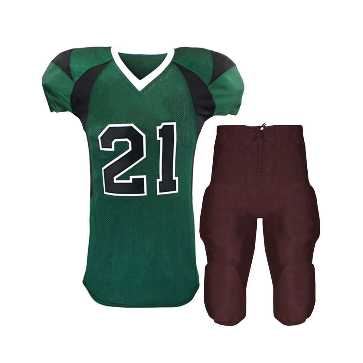 High-quality American Football Uniforms are completely customizable in terms of color, design, and style. The logos of the teams are also included.