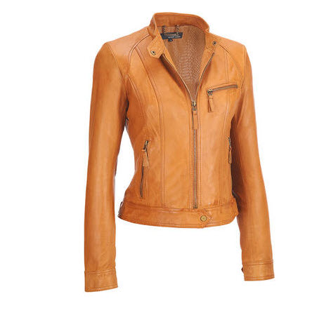 We have brought you the ideal mix of comfort, elegance, and style in the form of this Women’s Standing Collar Leather Jacket, This excellent Lightweight leather jacket will keep your love for leather apparel alive. Because of its unusual style, which includes a good quality YKK zipper front closing, this Women’s Standing Collar Leather Jacket is sure to turn heads.